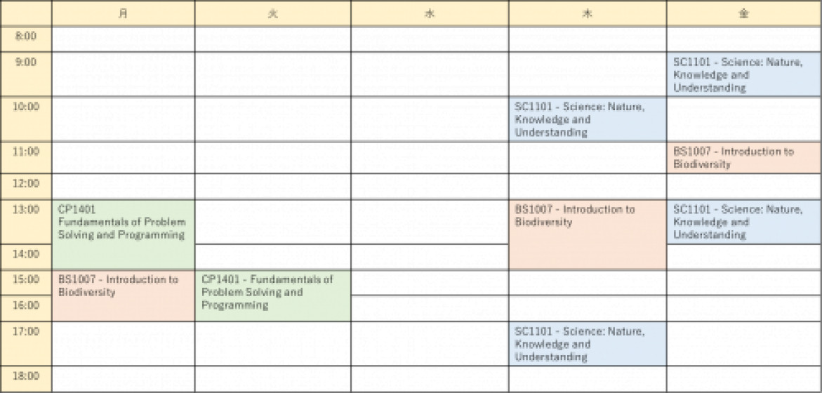 海洋生物学を学んでいます。今はちょうど1学期目が終わったところで、Introduction to Biodiversity(一番基礎なbiologyと微生物から哺乳類までの進化など)とScience: Nature, Knowledge and Understanding(Scienceの歴史とNatural Selectionによる生物進化などについて)、あとマイナーでProgrammingの3科目をとっていました。