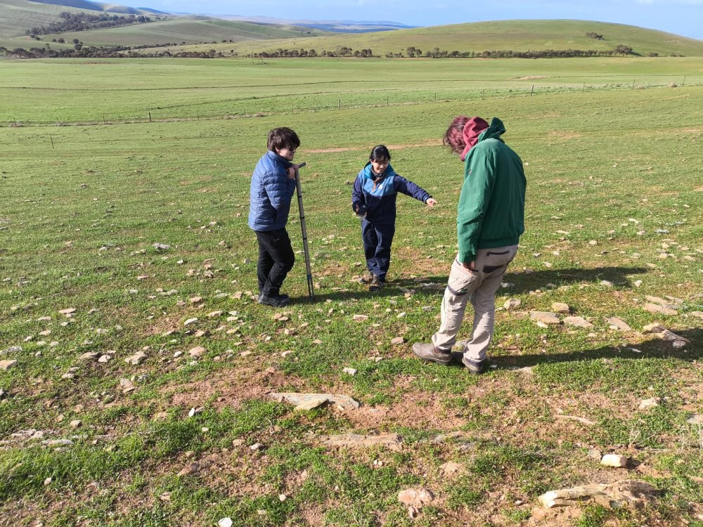 草原に隠された穴の中に住むピグミーブルータングリザードを見つけ出し、その生態を調査するためです。文章にするととても簡単に聞こえますが、広大な自然の中で、彼らの行動範囲はわずか半径60mほど。だからこそ、「なぜここにいるのに、すぐ隣の草原にはいないのか?」という謎が生まれます。その調査方法は、驚くほど原始的なんです(笑)