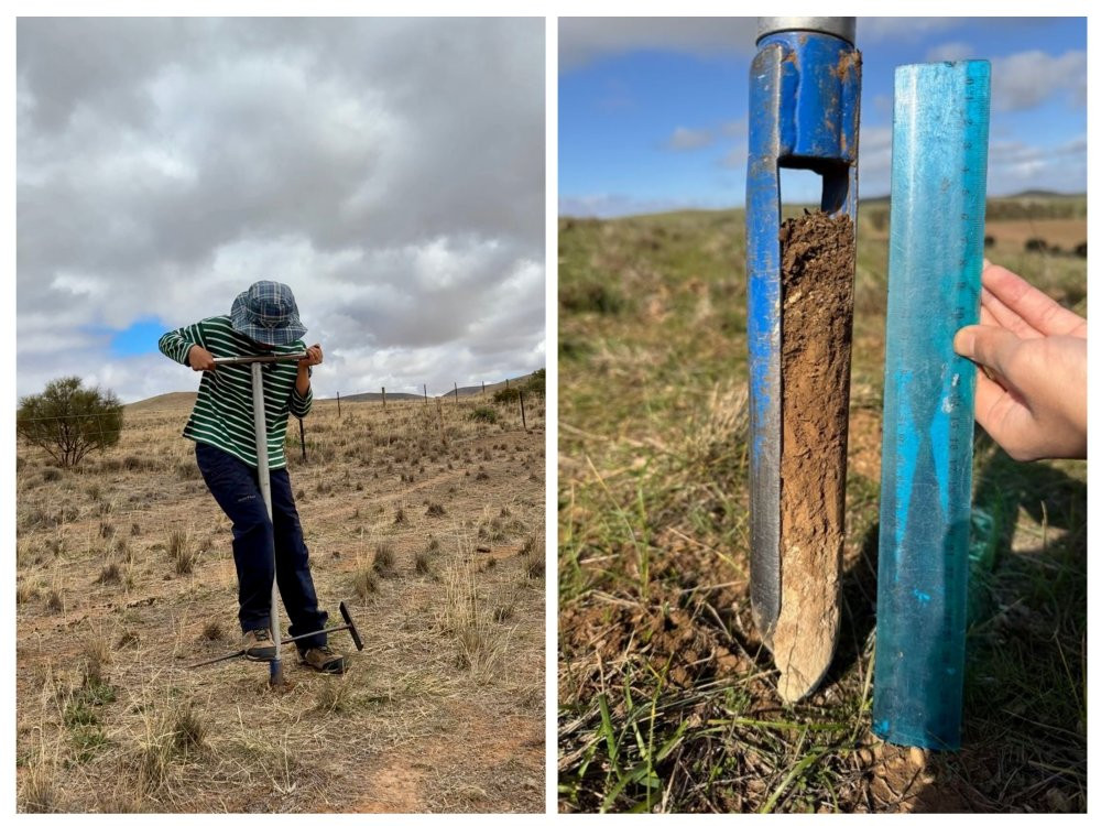 トカゲの生息が確認されている場所と、確認されていない場所を比較するために、それぞれの地点で土壌を「深さ 30cm」 採取します。